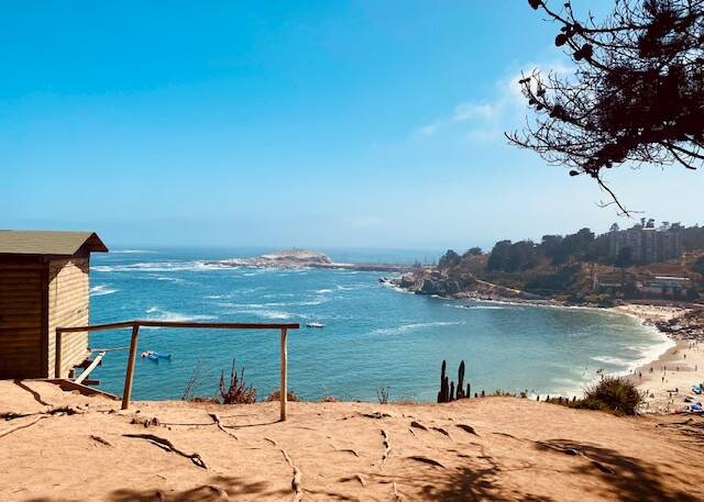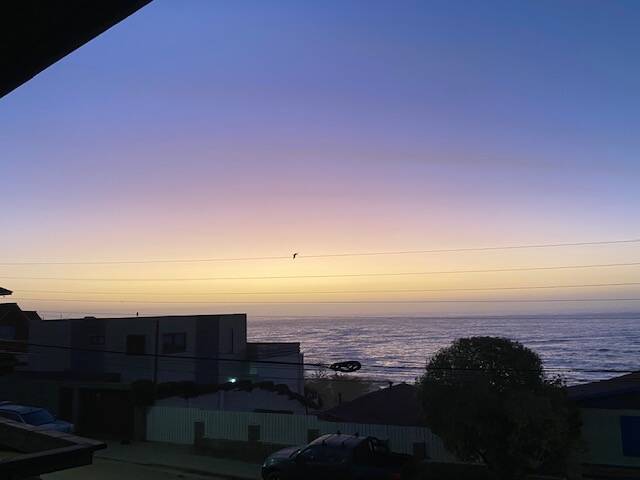 El Canelo. Blick aus dem Fenster von der Villa Sophia, in der Judy und ihre Familie seit vielen Jahren Freunde empfangen und den Sommer verbringen. Schon vor 20 Jahren lud sie mich ein zum Schreiben, zum Schauen, zum Sein. Das Atmen der Seele. Das Geschrei der Möwen. Der Wind frischt auf und kühlt. Alles ist da.