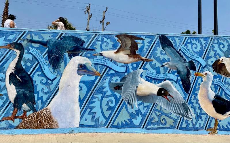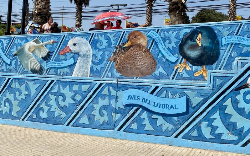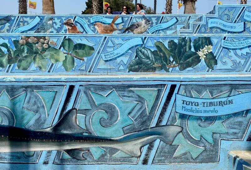 Geschaffen von dem lokalen Künstler Francisco Ramos 2022 in El Quisco an den Wänden eines Spielplatzes und kleinen Parks auf dem Weg zum Strand. So viele Menschen, gerade jetzt im Sommer, halten an, fotografieren sich davor, laufen die Tier- und Pflanzenwelt ab, erklären sie ihren Kindern. Für mich ein schöner Abschied von Chile und Übergang auf dem Weg nach Galapagos und in dem Schatz seiner besonderen Pflanzen- und Tierwelt.